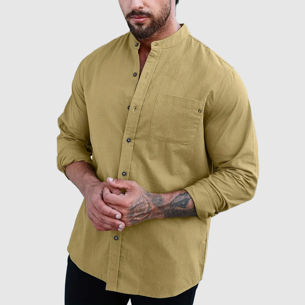 Polished & Modern: Men's Long Sleeve Shirt with Mandarin Collar!