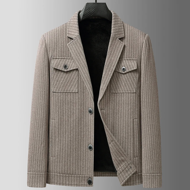 This casual yet sophisticated striped wool jacket is perfect for a variety of occasions, from a casual outing to a semi-formal event. Its warm and comfortable fabric will keep you cozy on chilly days. The classic design and stylish stripes make it a versatile piece that can be easily paired with different outfits. Don't miss out on this must-have jacket for your wardrobe!