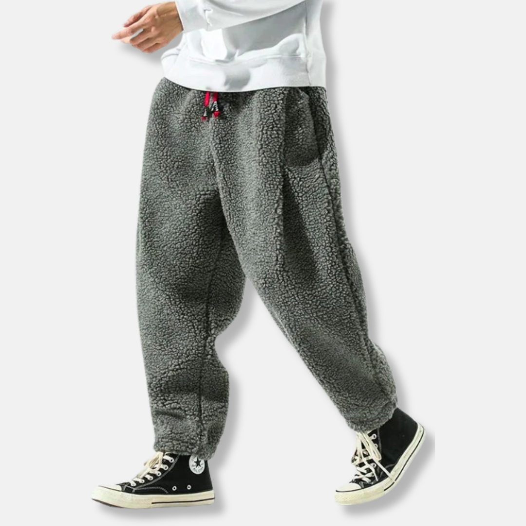 Crafted for the discerning gentleman, these Men’s Sherpa Knit Loose Fit Pants redefine casual comfort. Featuring an elastic waistband and ankle cuffs, their relaxed silhouette offers effortless style and a flattering drape for any relaxed occasion.