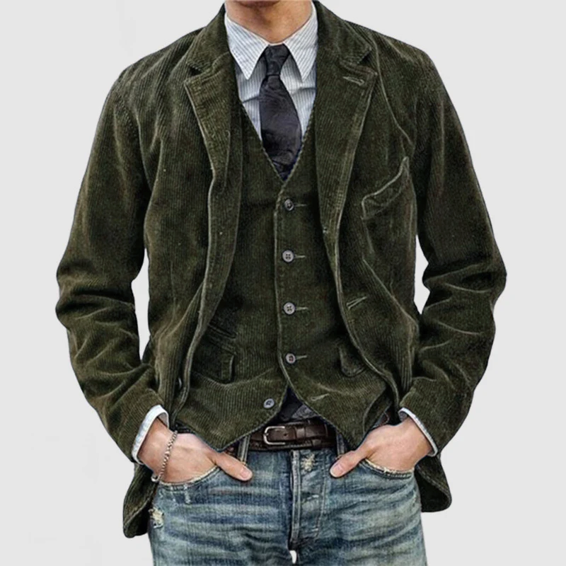 This timeless corduroy blazer is a wardrobe essential for any man who appreciates classic style. With its rich texture and comfortable fit, it's perfect for adding a touch of sophistication to any outfit. Whether you're dressing up for a special occasion or simply looking to elevate your casual look, this blazer is a must-have.