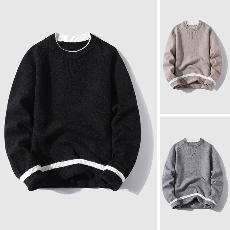 This cozy knit sweater offers a timeless look with a modern edge. The contrasting cuffs and hem add a pop of color and texture, while the classic crewneck design provides a comfortable and versatile fit. Perfect for layering or wearing on its own, this sweater is a must-have for any man's wardrobe.