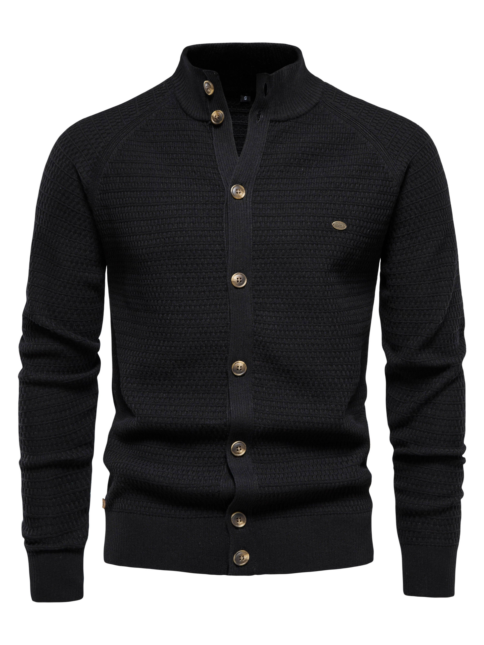 Elevate your casual style with this Ribbed Slim Fit Textured Knit Sweatshirt from Couture-Emporium. Featuring a distinctive ribbed high collar, button-front design, and eye-catching textured knit, this slim-fit sweatshirt offers a modern and refined look. Raglan sleeves ensure comfort and freedom of movement.