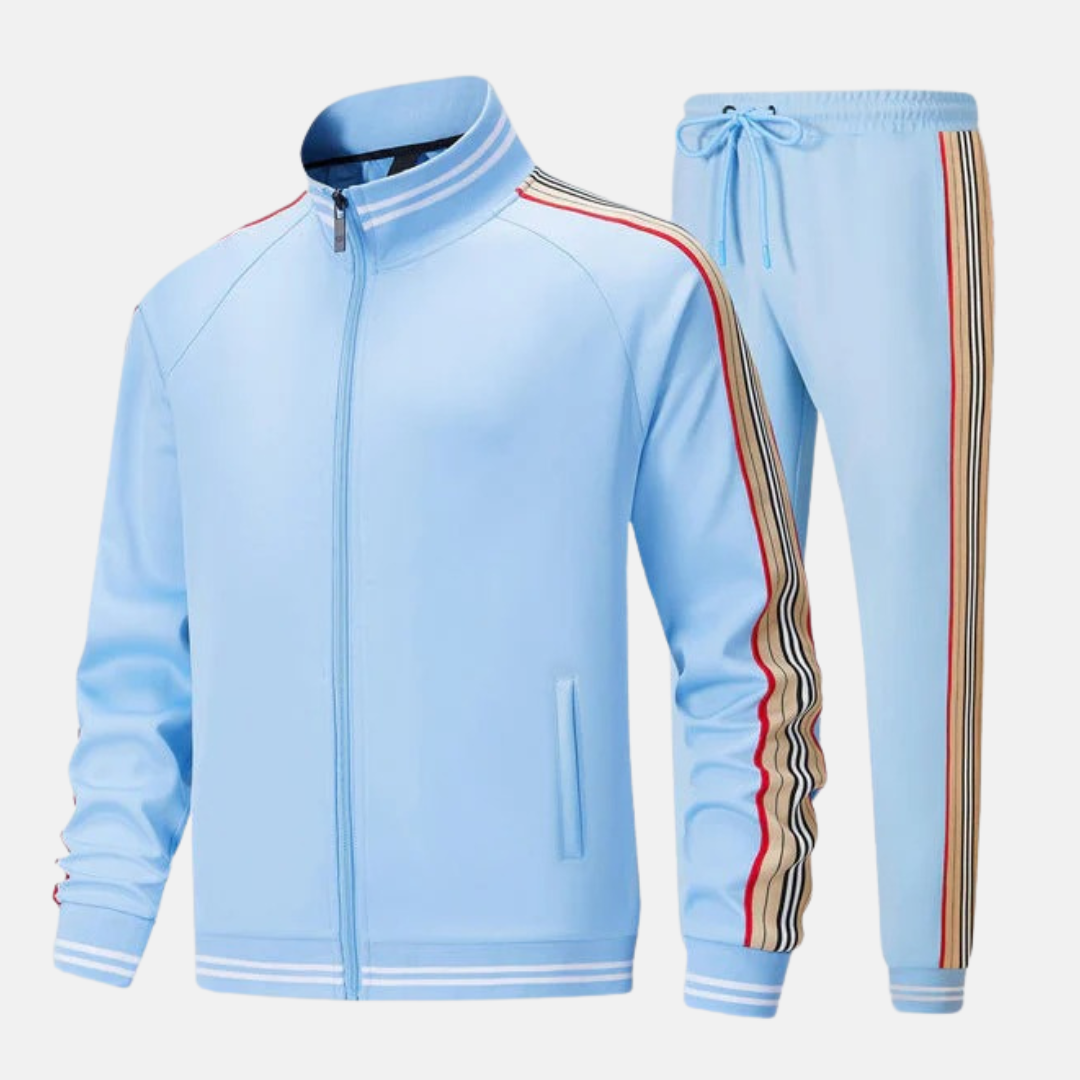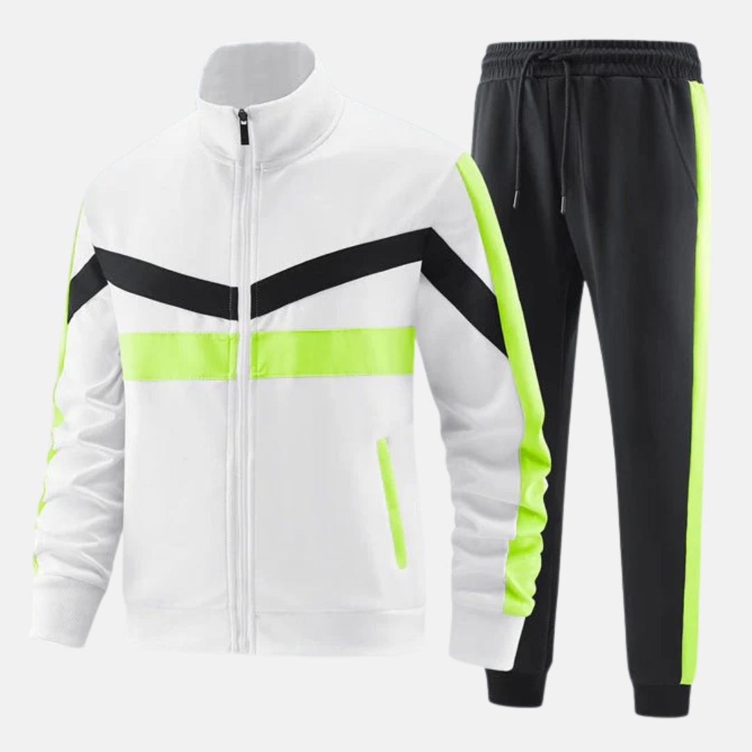 - Design: Slim Fit, Full Zip Jacket with High Collar and Jogger Pants