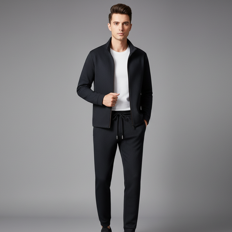 Meet the "George Elite" Two-Piece Tracksuit Set— a versatile essential built for effortless style and all-day comfort. Crafted from a soft textured fabric, it offers a clean, minimalist look that works from lounging to casual outings. The full-zip jacket and drawstring joggers bring both function and modern edge to your wardrobe.