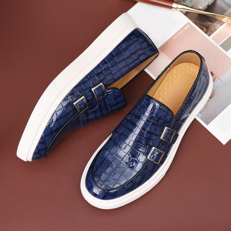 These eye-catching loafers are perfect for adding a touch of personality to your outfit. The unique double buckle design and crocodile-embossed material create a visually striking look. The comfortable fit and soft materials ensure both style and comfort. Whether you're heading to a formal event or dressing up your casual attire, these loafers are a must-have for any fashion-conscious man.