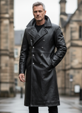 Men’s Leather Trench Coat. This timeless trench coat offers classic style & practical warmth. Crafted from supple PU leather, it features a full-length cut, double-breasted closure, and sleek silhouette, making it perfect for formal and everyday wear in cooler weather.