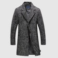 Elevate your style with Couture-Emporium's Tailored Fit Wool Button Front Coat. This men's mid-thigh length wool coat boasts a notched lapel and button-front closure for a classic, sophisticated look. Perfect for formal or business occasions, this coat offers warmth and style.