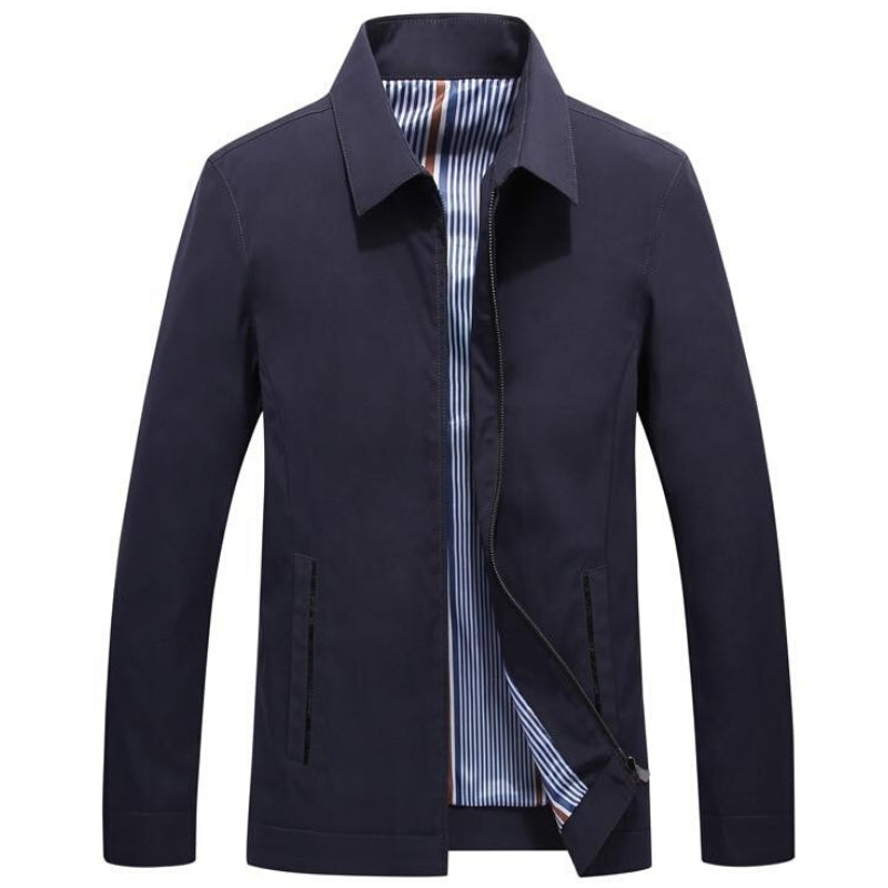 This sport coat is a wardrobe essential for any man. With its comfortable fit and classic design, it's perfect for a variety of occasions, from casual outings to business meetings. The zipper closure and striped lining add a touch of personality, while the multiple pockets provide convenient storage.