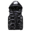 Stay warm and stylish with Couture-Emporium's Wind-Resistant Quilted Hood Puffer Vest. This men's relaxed fit puffer vest offers superior insulation and features a glossy, wind-resistant outer layer, a cozy quilted hood, and practical zippered pockets for secure storage. Perfect for layering!