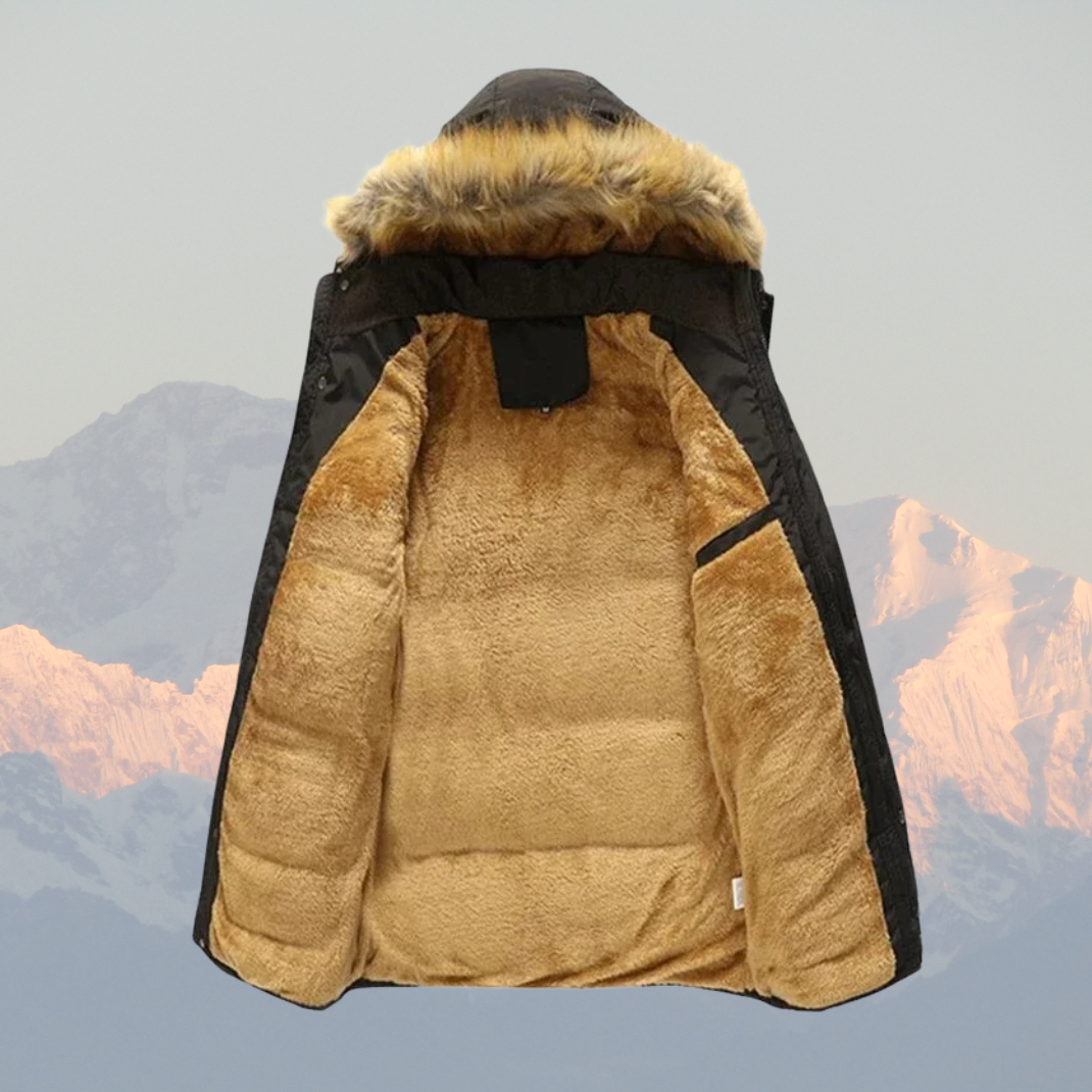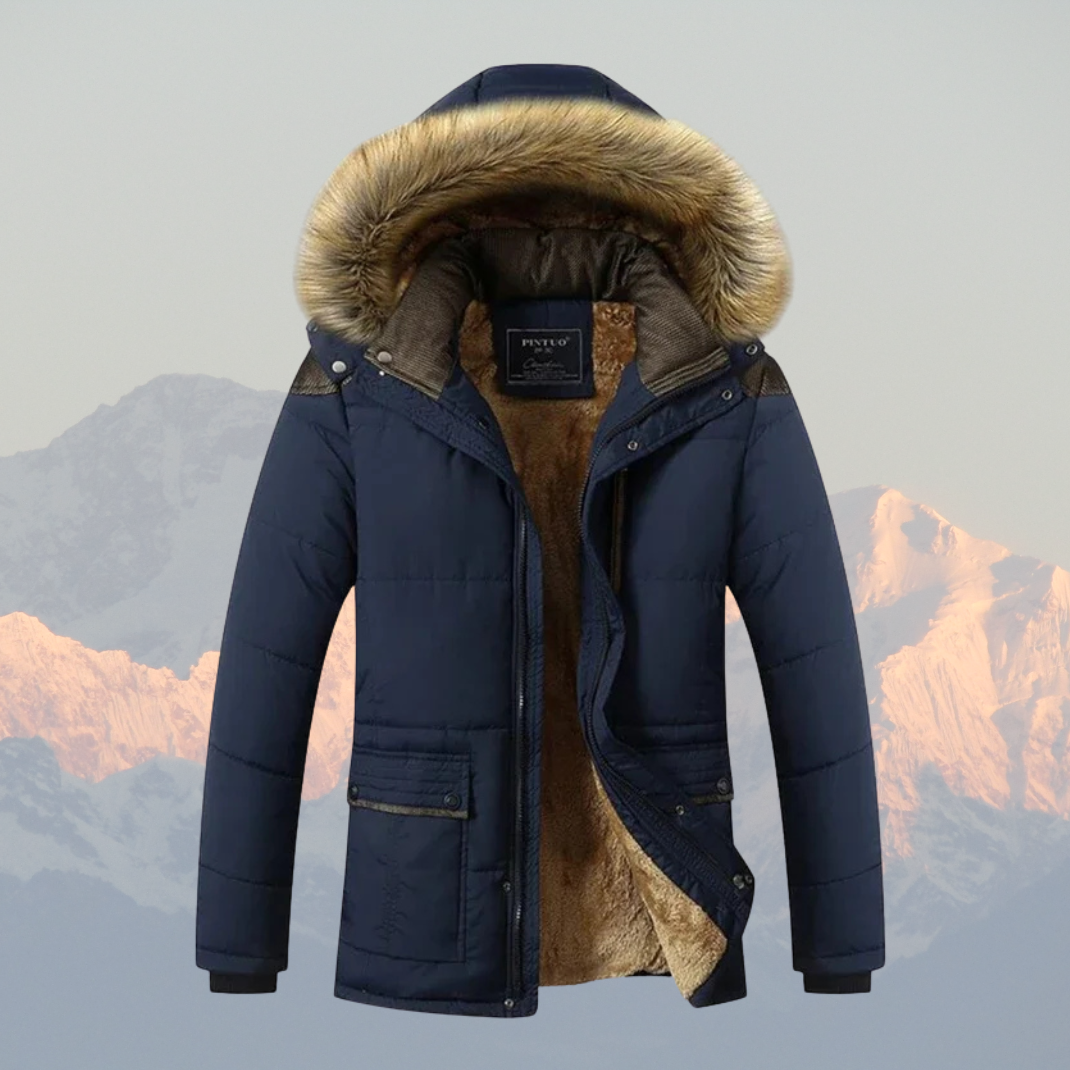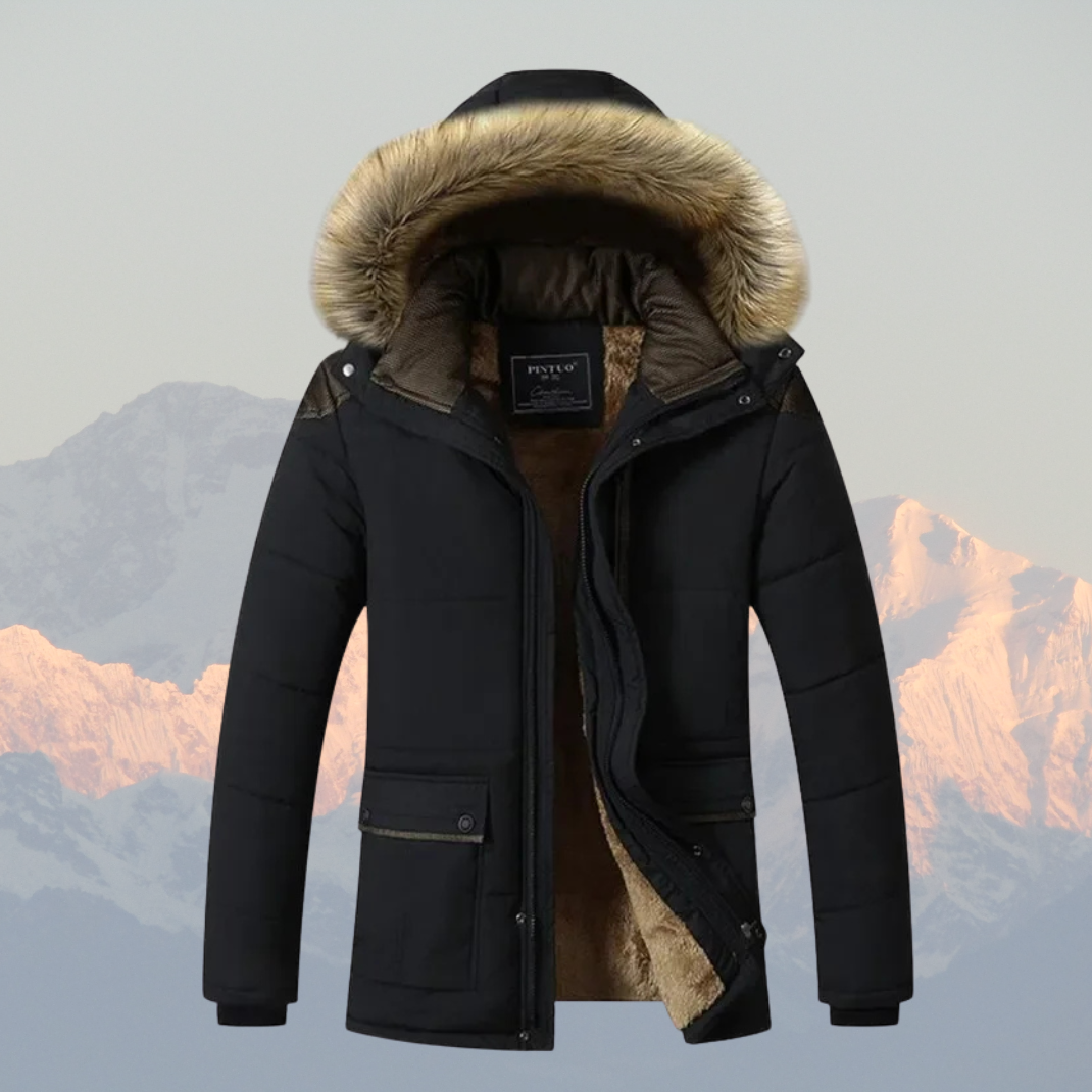 Men’s Winter Puffer Jacket – Faux Fur Hood, Thick Fleece Lining, Water-Resistant Coat