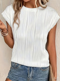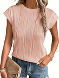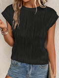 This women’s top features a unique pleated texture, adding dimension and style to a simple silhouette. The lightweight fabric and cap sleeves offer a comfortable fit, perfect for warm weather or layering under jackets. Its vibrant green hue makes it an eye-catching piece for casual outings or smart-casual events. Pair it with jeans or tailored pants for a versatile look.