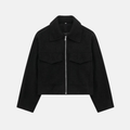 This relaxed fit cropped jacket, crafted from wool, features a collared neckline and long sleeves, making it a versatile choice for women. Designed with a full-zip front and practical flap pockets, it offers a comfortable silhouette suitable for casual wear.