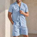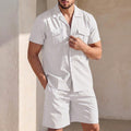 Crafted from a breathable cotton blend, this set promises ultimate comfort without compromising on style. The shirt features a relaxed fit with a classic spread collar and short sleeves, while the matching knee-length shorts offer a flat front for a clean silhouette. Designed for versatility, simply pair with your favorite espadrilles or minimalist sneakers for an impeccably put-together look.