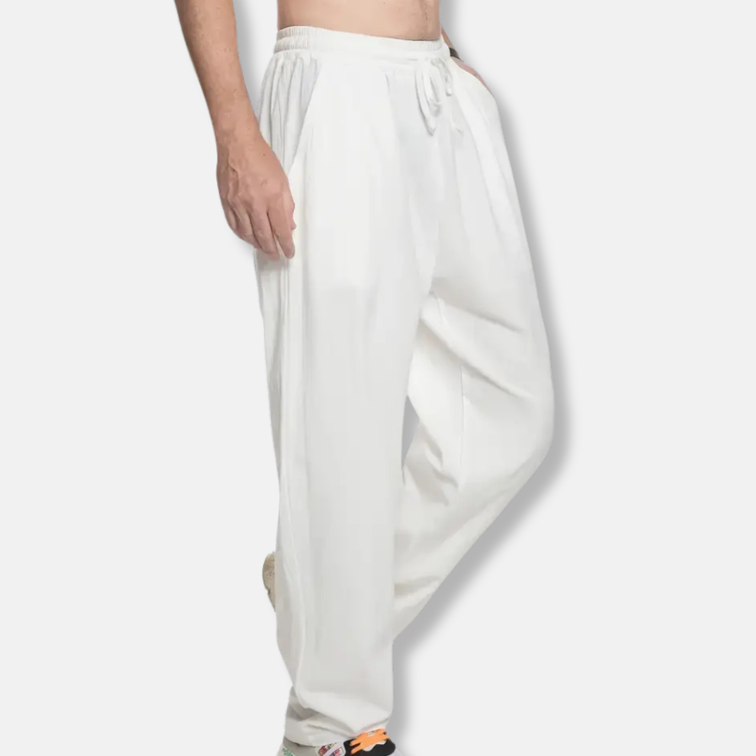 Embrace a relaxed approach to casual dressing with these full-length drawstring pants for men. Crafted from breathable linen, their solid, relaxed fit design offers comfort and ease for any laid-back occasion.