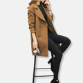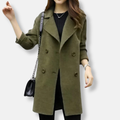This women's collared, mid-length double-breasted coat offers a regular fit for everyday wear. Designed with a sophisticated 3/4 sleeve, it features a button front and lapel collar, complete with stylish side slits.