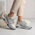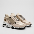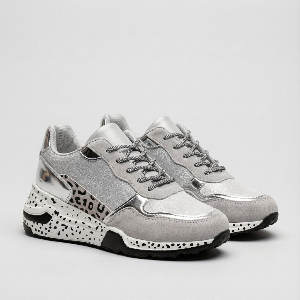 These Sage chunky sneakers command attention with their bold platform sole and luxurious suede construction. Featuring mixed media design, metallic accents, and subtle animal print, they deliver statement style for any casual outing.