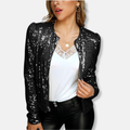Embrace sophisticated style with this women's cropped jacket, designed with a regular fit and a refined round neck. Its long sleeves and collarless, sequin-embellished finish make it an ideal choice for a party.
