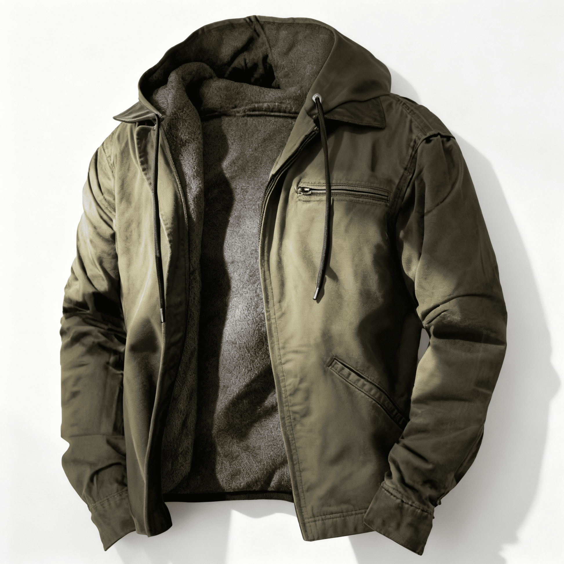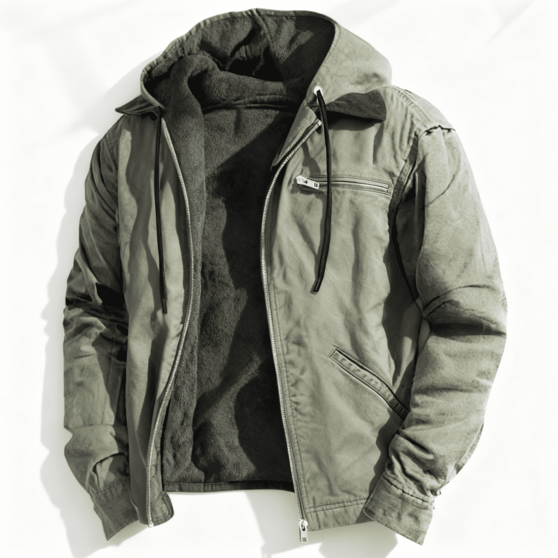 The Sebastian utility jacket makes a statement with its bold zip front and multi-pocket design. Crafted from durable cotton with a relaxed fit and cozy fleece lining, this hip-length jacket is your definitive choice for a confident casual day out, complete with an adjustable hood and contrast collar.