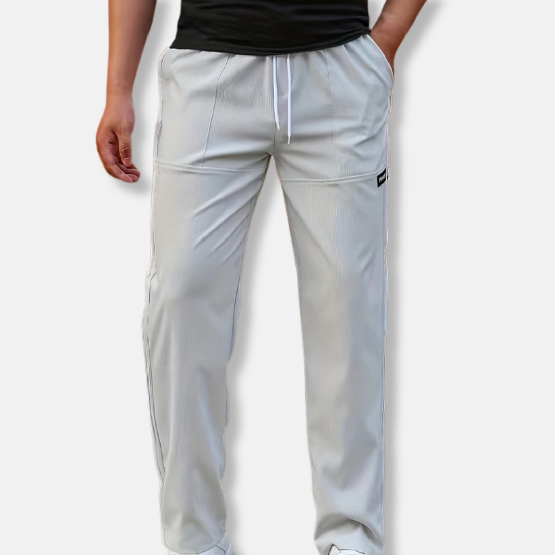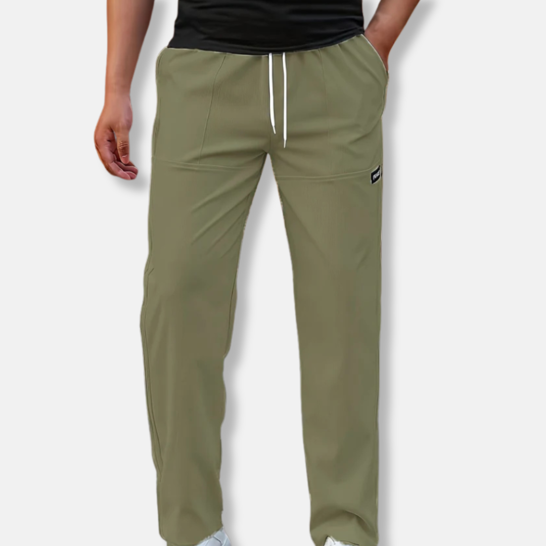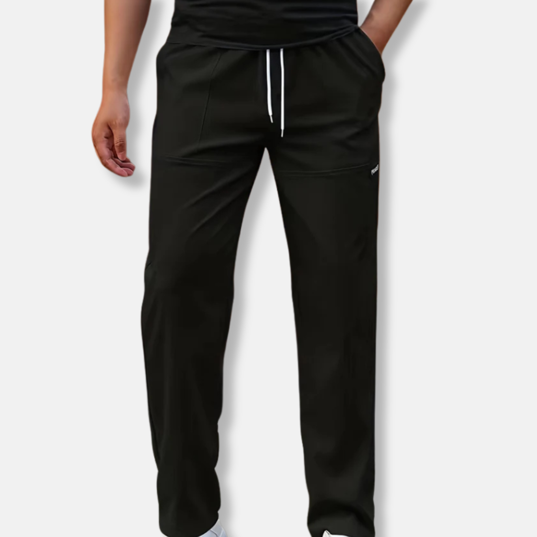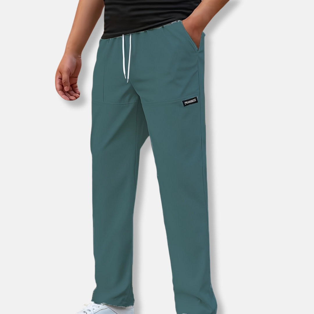 Designed for men, these relaxed fit jogger pants offer a full-length, solid design perfect for casual wear. Featuring a comfortable drawstring waist and practical side pockets, they combine ease with everyday style.