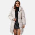Embrace the colder months with this elegant knee-length puffer coat, designed for women seeking refined winter outerwear. Its relaxed fit and hooded neckline offer both comfort and coverage, while the solid, long-sleeve design is enhanced by quilted detailing and practical full zip closure, complete with ribbed cuffs.