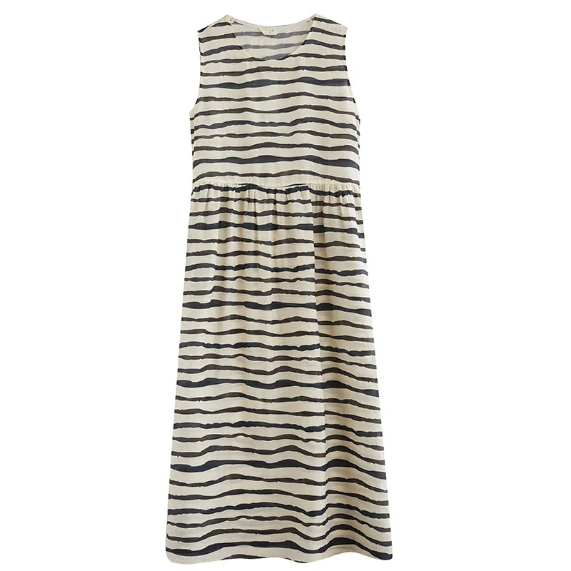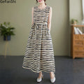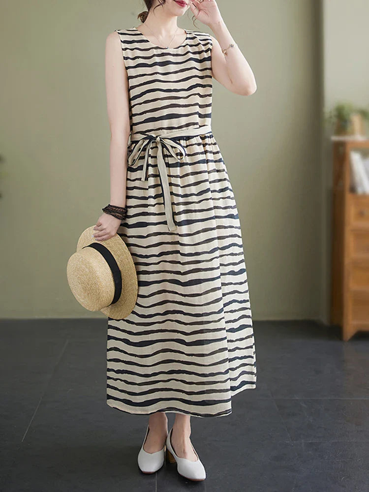 Elevate your wardrobe with this Women's Striped Maxi Dress. Featuring a flattering A-line silhouette, sleeveless design, and belted waist, this dress offers an elegant fit and timeless style. Perfect for any occasion, this maxi dress will become your go to dress!