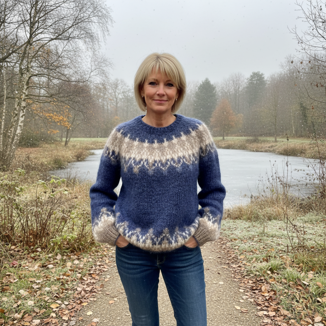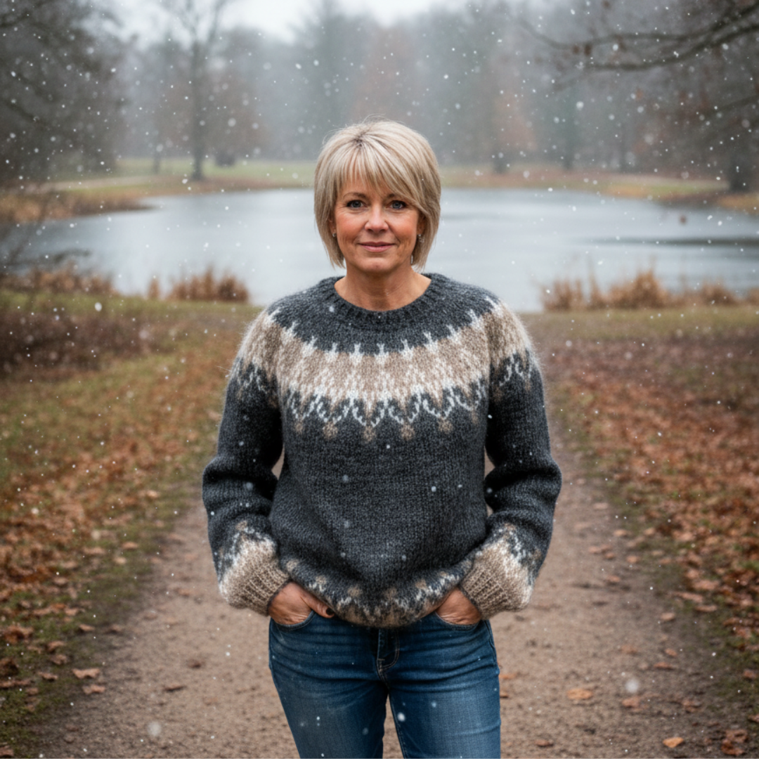 This oversized sweater, designed for women, is crafted from wool and features a distinctive geometric pattern. With its comfortable crewneck and long sleeves, it offers a relaxed yet refined silhouette that is ideal for casual occasions. The hip-length design is subtly enhanced by yoke patterning.