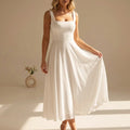 Adorn yourself in the quintessential summer dress that captures both grace and contemporary style. This exquisite midi sundress is designed for memorable moments, from sunlit garden parties and romantic alfresco dinners to elegant daytime events. Its clean lines and delicate flow embody an understated luxury, ensuring you radiate serene confidence and effortless beauty wherever you go.