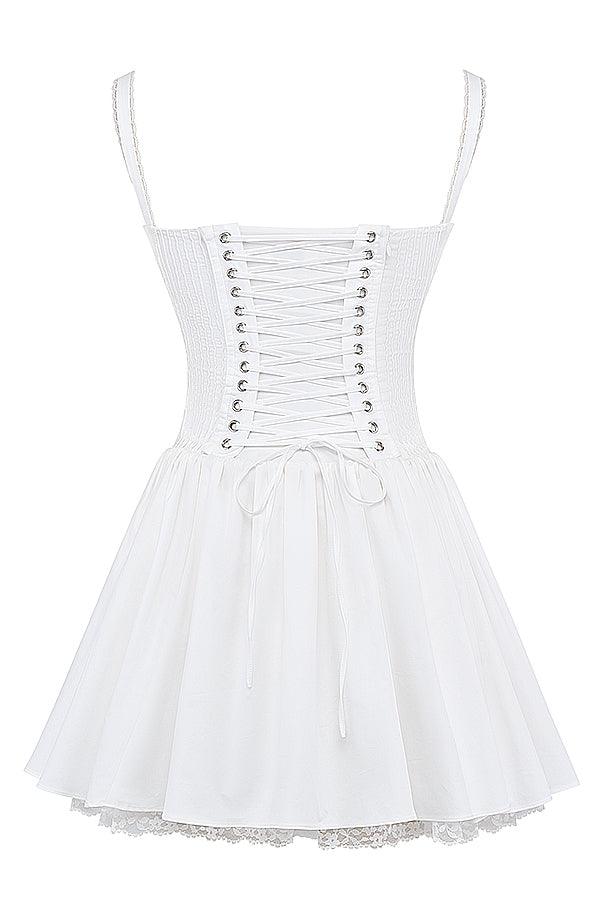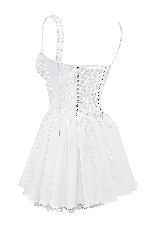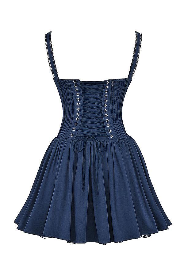 Women's Mini Dress - Fitted Bodice - Lace Trim - Spaghetti Straps - A-Line Silhouette