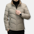 Designed for men, this hip-length puffer jacket is crafted from durable nylon, featuring a standard fit and a practical stand-up collar. It includes a quilted design, a zipper front, and convenient side pockets, making it an ideal choice for winter wear.