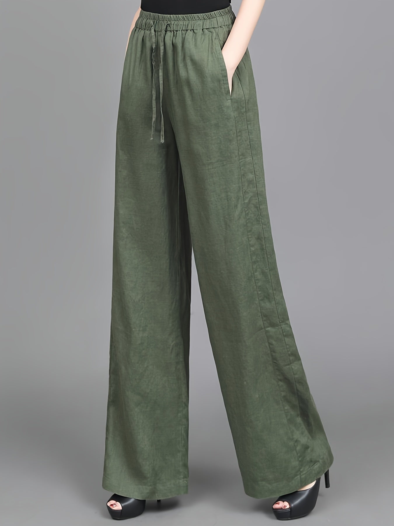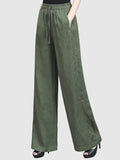 Step into classic style with these vintage-inspired wide-leg pants, perfect for spring, summer, and fall. Made from a breathable viscose blend linen, they offer a casual loose fit with pockets for practicality and an artistic slimming design that enhances your silhouette. These solid color pants are ideal for relaxed days out or adding a touch of vintage charm to your everyday look. Their woven fabric and no elasticity provide a structured yet comfortable feel, perfect for any season.