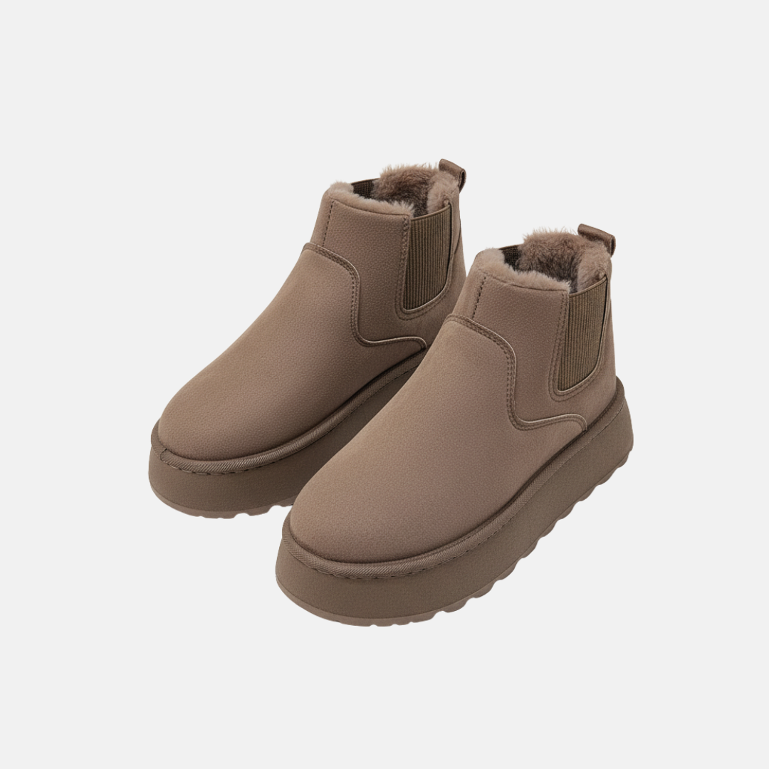 Elevate your winter wardrobe with our Women’s Ankle Boots. Crafted from luxurious faux suede with a cozy faux fur lining and a chic slip-on design, these boots feature a chunky platform sole for both style and comfort, ensuring versatile elegance for any casual occasion.