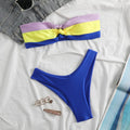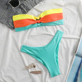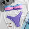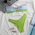 - Design: Strapless knot front bandeau with high-cut bottoms