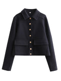 Elevate your wardrobe with this Wool Blend Cropped Fit Bomber Jacket by Couture-Emporium. This button-front jacket features a structured collar and a stylish cropped silhouette, perfect for adding a touch of modern sophistication to any outfit. The refined wool blend provides warmth and a polished look.