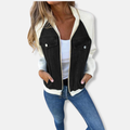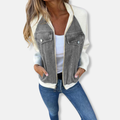 Elevate your outerwear collection with our Wool Blend Denim Panel Detail Bomber Jacket from Couture-Emporium. This relaxed fit, zip-front women's bomber combines the warmth of a wool blend with the edgy style of denim panels. Functional pockets and ribbed details add to the stylish yet practical design.