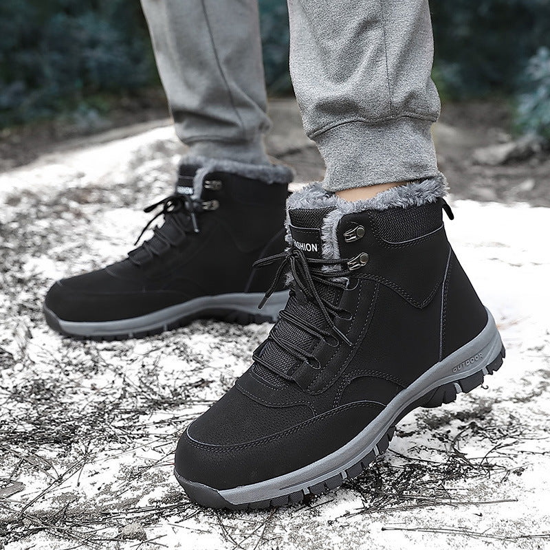 - Design: High-top ankle-length with a lace-up front and lugged non-slip outsole.