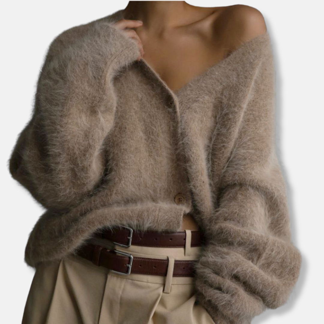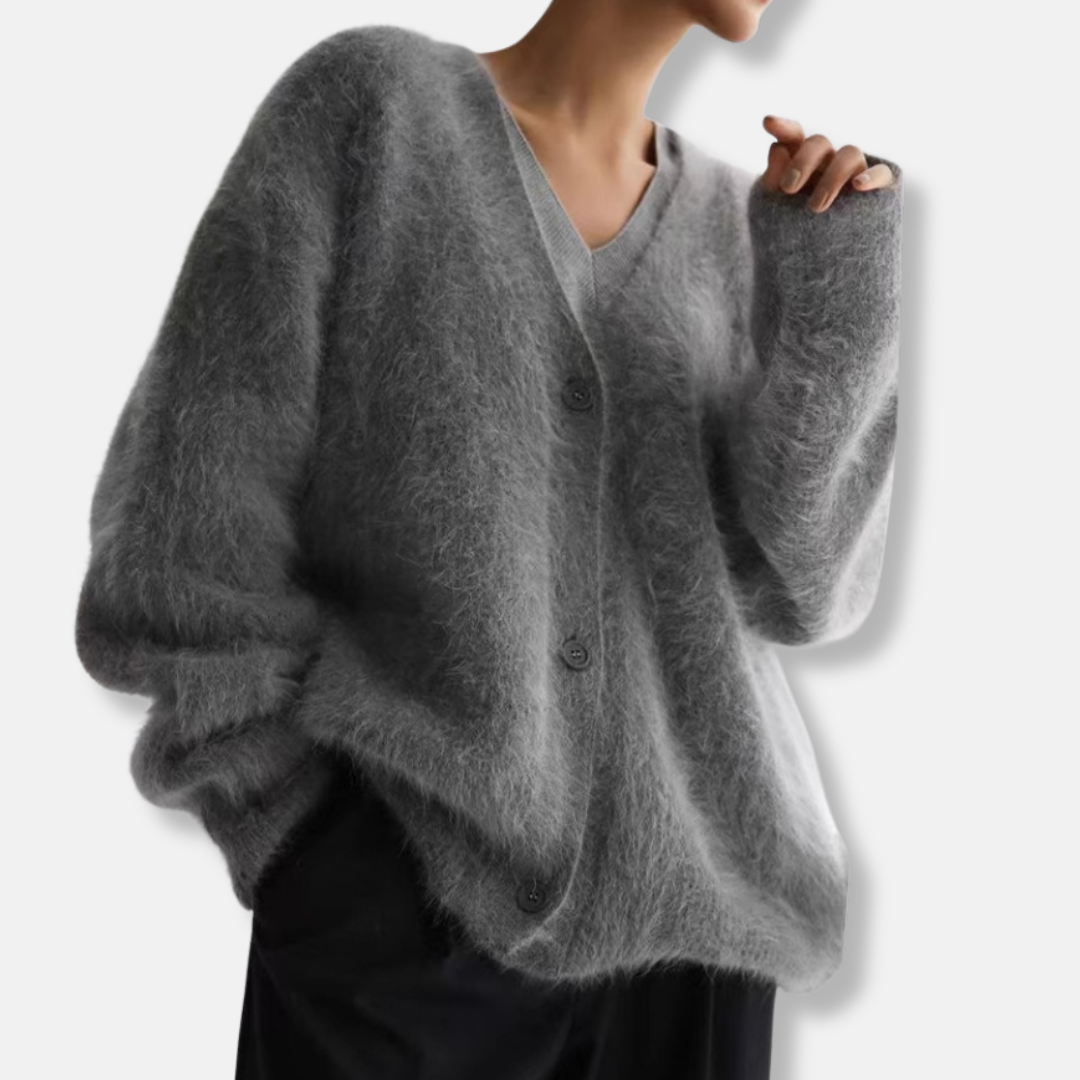 Embrace effortless elegance with our Women’s Cardigan, a luxurious Mohair Blend piece designed for an Oversized Relaxed Fit. Its flattering V-neck and classic Button Closure offer versatile styling, perfect for a sophisticated, comfortable look that transcends seasons.