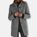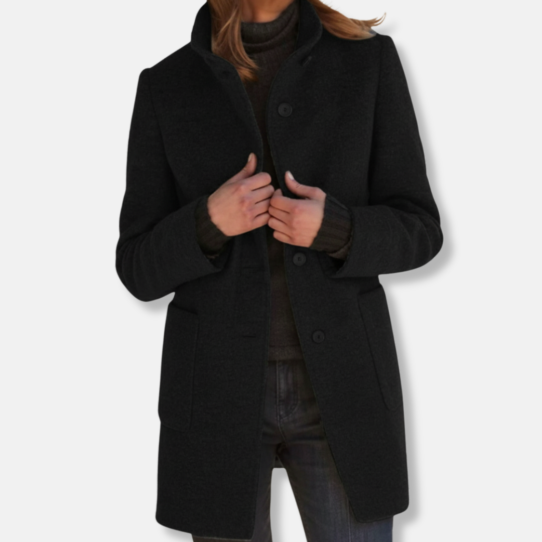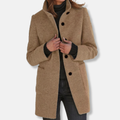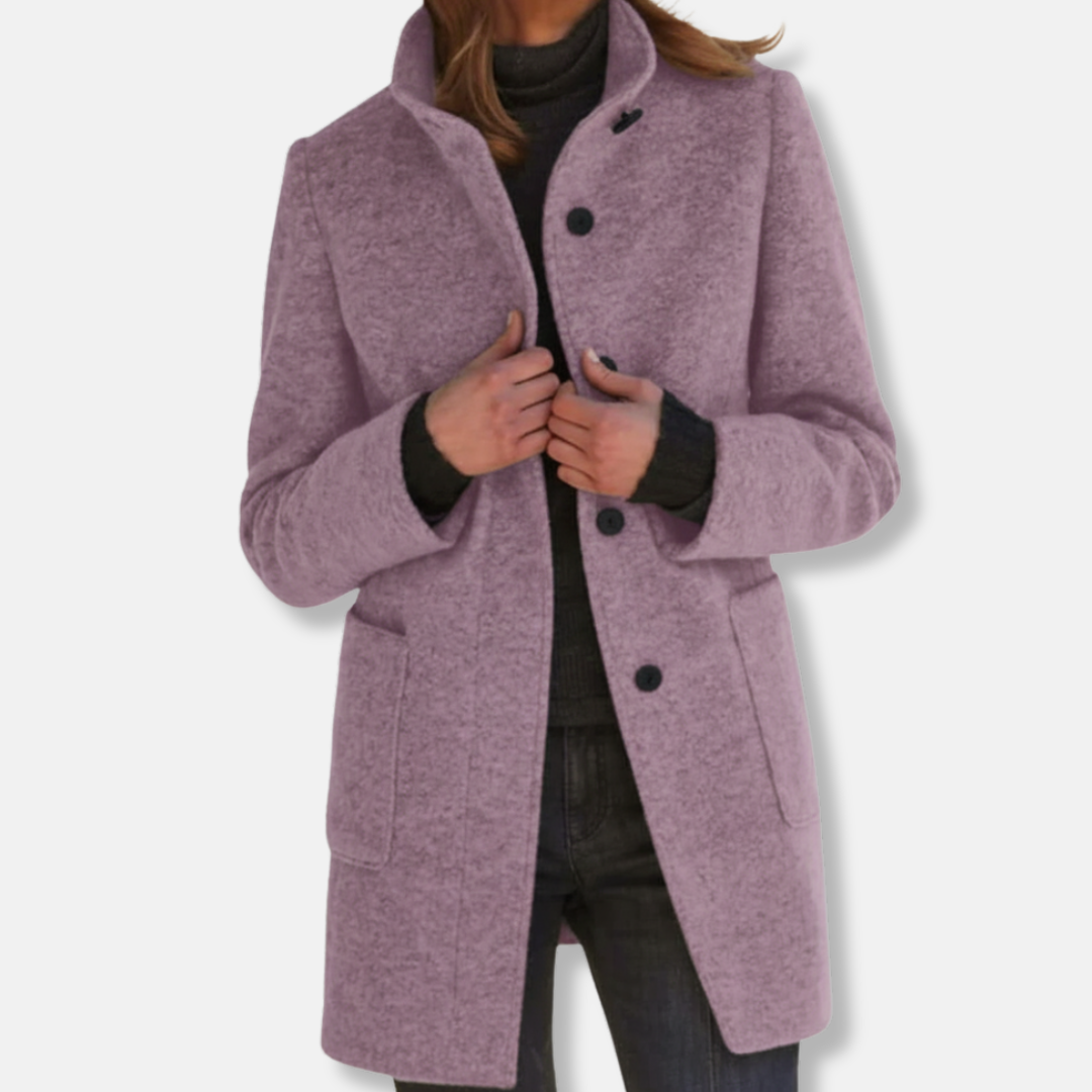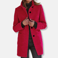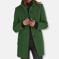 This women's wool coat offers both warmth and sophistication with its structured fit and bold green color. The classic design features a button-up front and a sharp collar, making it perfect for both formal and casual settings. Crafted from high-quality wool, this coat provides a polished look while keeping you cozy during colder months.