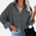 Elevate your casual style with our Ribbed Texture Oversized Corduroy Shirt from Couture-Emporium. This women's corduroy shirt features a button-up front, hip-length cut, and an oversized fit for ultimate comfort and a trendy look. Perfect as a casual hip-length layer!