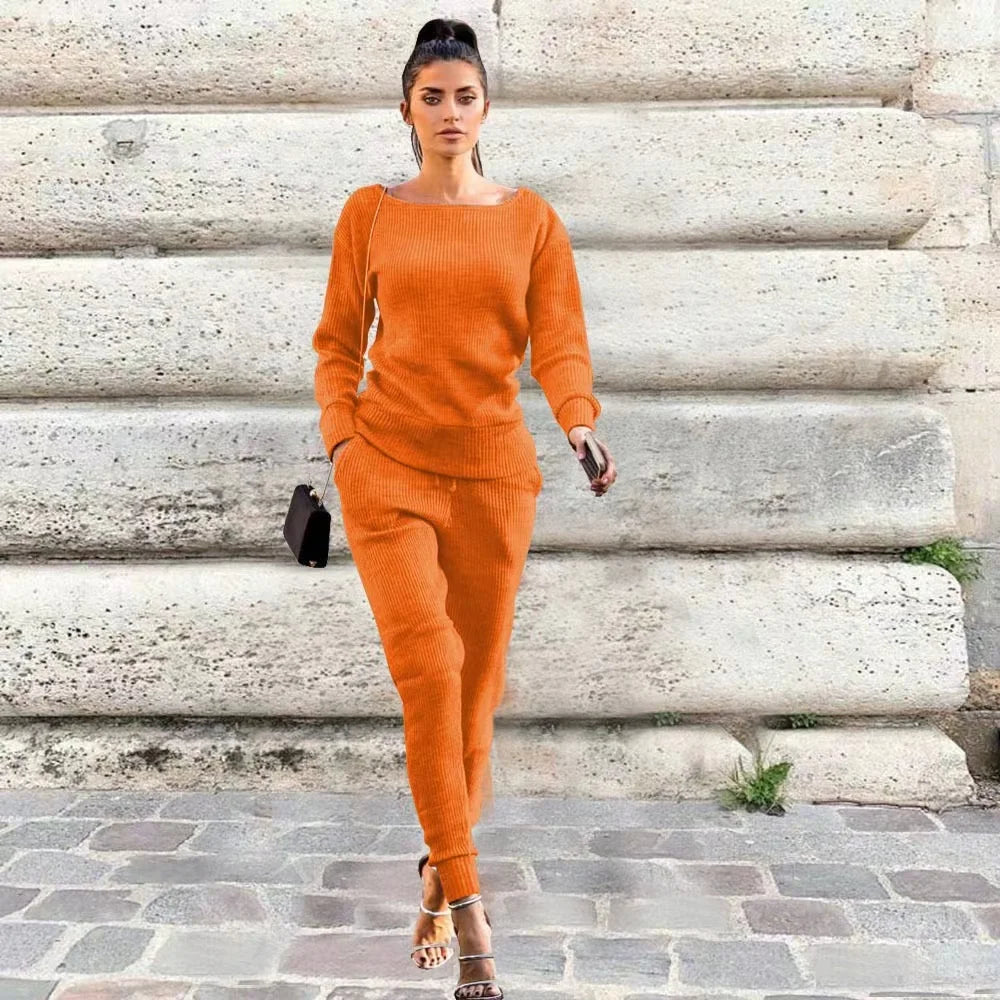 This sweatsuit is a perfect blend of comfort and style. The textured fabric adds a touch of sophistication, while the relaxed fit ensures maximum comfort. Ideal for lounging at home or running errands, this set is perfect for casual days. The matching top and pants create a coordinated look that's both stylish and effortless.