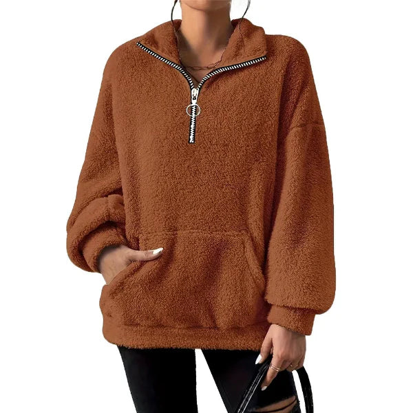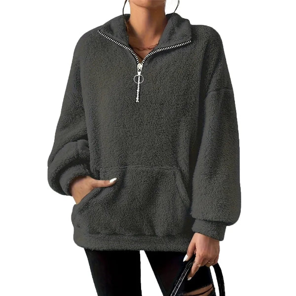 - Design: Oversized, Half-Zip, Stand Collar