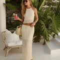 - Design: Pleated Halter Neck Crop Top with Ruffled Hem