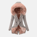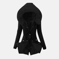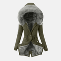 Stay stylish and cozy with Couture-Emporium's Plush-Lined Slim Fit Adjustable Waist Jacket. This mid-length jacket features a plush-lined hood, adjustable waist for a flattering silhouette, and practical flap pockets. Perfect for everyday wear!