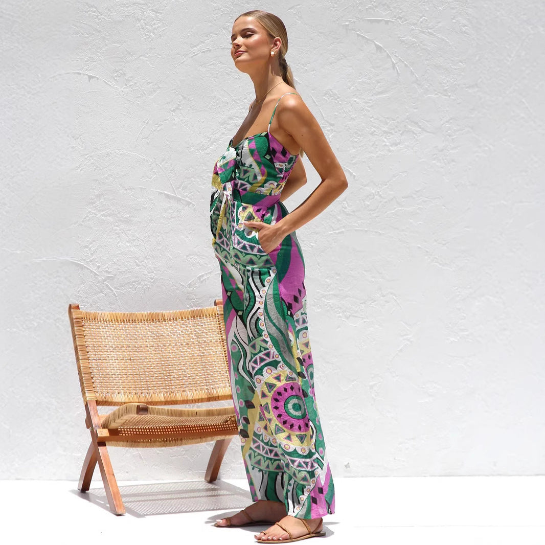 Effortless style meets ultimate comfort in this Women’s Jumpsuit – Wide Leg – Spaghetti Strap – Front Tie Cut-Out – Cotton Blend. This trendy jumpsuit features a flattering wide-leg silhouette, delicate spaghetti straps, and a playful front tie cut-out. Perfect for warm weather and casual outings, this cotton-blend jumpsuit ensures a breezy and stylish look.
