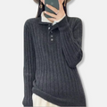 Elevate your everyday with our Women’s Knit Pullover Top. This ribbed knit design, featuring a classic polo collar and elegant button placket, offers a relaxed yet refined silhouette that flatters beautifully. Perfect for versatile styling, it blends timeless appeal with effortless comfort.