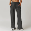 Knit Fabric High-Rise Wide Leg Lounge Pants from Couture-Emporium offer ultimate comfort and style. These women's lounge pants feature a high rise, wide leg, soft knit fabric, and a drawstring waist for a perfect fit, plus convenient pockets. Perfect for lounging or casual outings.