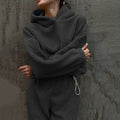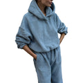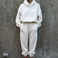 - Design: Relaxed fit with high waist pants and drawstring hoodie
