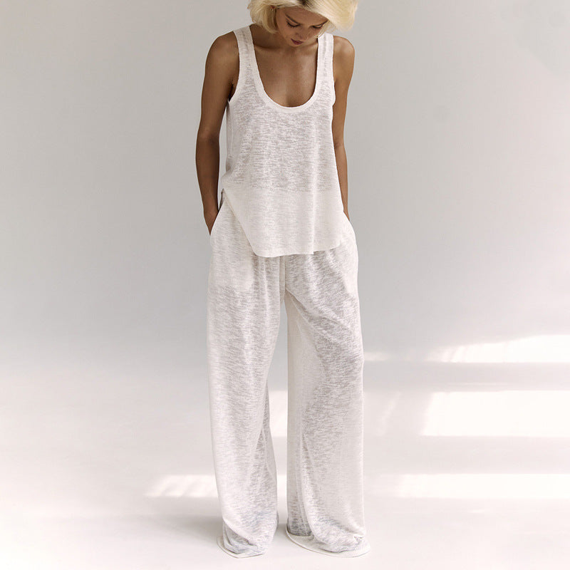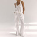 Unwind in style with the Couture-Emporium Women’s Loungewear Set – Sleeveless Twist-Front Top – Wide-Leg Pants – Soft Knit Fabric. This comfy two-piece boasts a twist-front top and wide-leg pants, perfect for relaxed days. The soft knit fabric drapes beautifully for ultimate comfort.