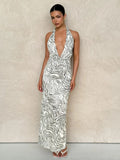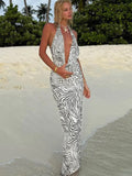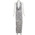 - Design: Slim fit, halter neck, plunging neckline with animal print