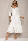 The Couture-Emporium Women’s Midi Dress – Broderie Anglaise – Relaxed Fit – Belted Waist – Long Sleeve is the perfect blend of comfort and elegance. Featuring intricate eyelet embroidery and a flattering belted waist, this midi dress offers a relaxed silhouette suitable for various occasions. The button-front design and long sleeves add a touch of classic style.