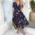 Embrace effortless style with this Women’s Midi Dress – Chiffon – Deep V-Neck – Short Sleeve – Bohemian Relaxed Fit from Couture-Emporium. This flowing dress features a flattering deep V-neck, short sleeves, and a vibrant floral print on lightweight chiffon, perfect for a relaxed, bohemian vibe.
